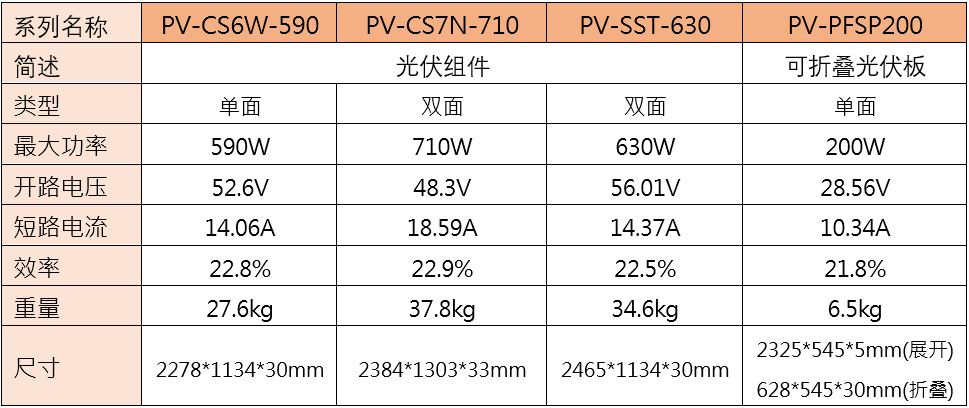 PV-CS/SST/PFSP系列: 光伏组件及可折叠光伏板