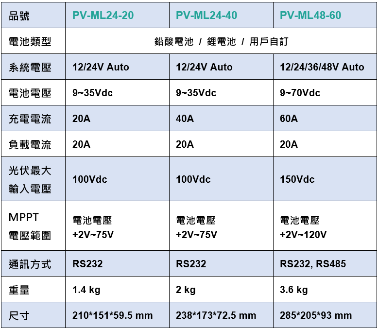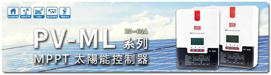 隨著全球對氣候變化的關注和碳中和目標的推進,可再生能源尤其是太陽能的應用持續增長,離網太陽能系統和混合能源系統的需求不斷增加。全球標準電源的領航者—明緯,深耕電源領域多年,順應市場需求推出了PV-ML系列 - MPPT太陽能控制器,包含了20~60A三款產品,能適配12~48V的電池電壓並相容多種電池類型,確保用戶能夠快速、高效地充電,推動清潔能源的更廣泛應用。