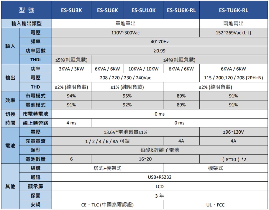 ES-SU/TU系列:3kVA~10kVA在線式不間斷電源系統